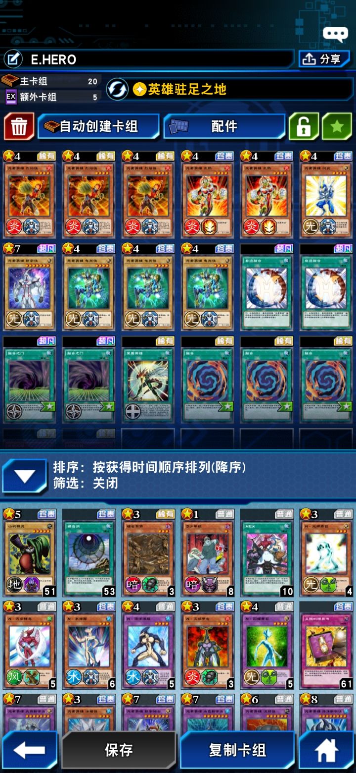 英雄卡组分享还没抽到5000砖就抽到了两张闪光侠两张奇迹融合,于是自己试着组了围绕闪光侠构筑的英雄卡组。融合之门这张场地卡对闪光侠来说特别好用,即使闪光侠被破坏下回合又能特招闪光侠,低分段玩着挺舒服的。特别是有一回和一个萌新打,招了两个四千攻的闪光侠站场,对面肯定都吓坏了,觉得英雄好厉害(不过也就欺负萌新舒服)