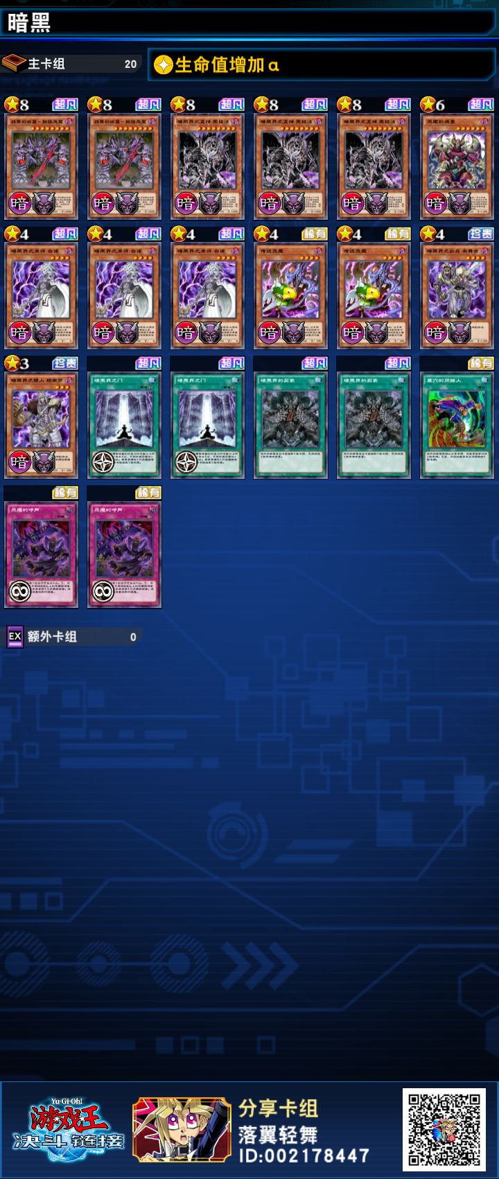 中速暗黑界恶魔,有条件可以将将星换一张战栗的凶皇,恶魔的呼声很契合暗黑界,同时传送恶魔也是恶魔字段,可以配合战栗的凶皇炸卡。这套强度很高。
