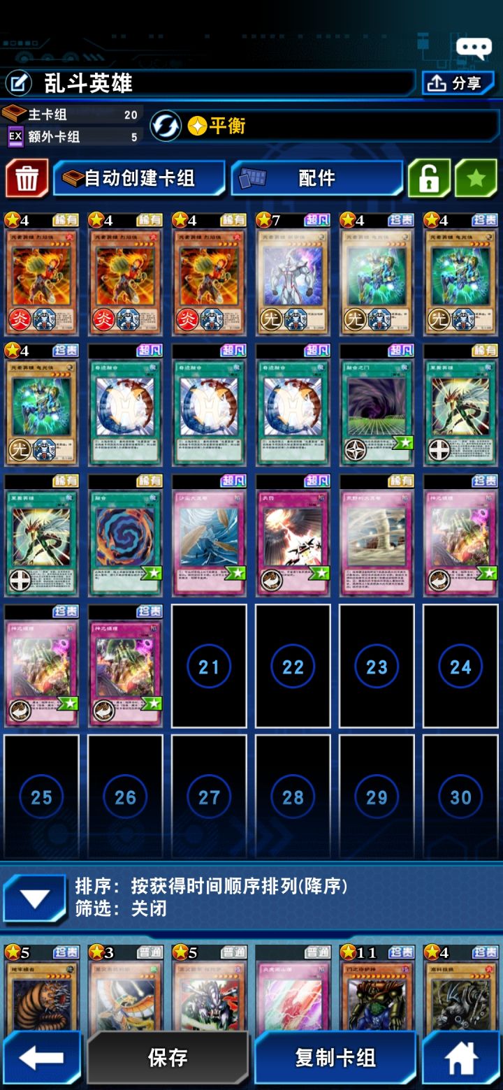 决斗大姐我也上王了呢,下面我给各位决斗者分享下我的上王卡组。这套卡组的特点是携带技能【平衡】,可以保证每局有英雄怪兽上手,避免完美的手牌。陷阱卡【荒野大龙卷】在对阵黑魔导卡组时能发挥出意想不到的结果。希望各位决斗者能有一个完美的游戏体验,早日成为决斗王喔😉