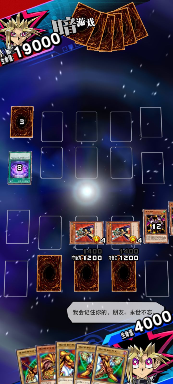 反正我是打了六回,这回消耗钥匙比较少,刚开始的时候那个钥匙啊,真用不起,每次都是差两张黑暗大法师的卡片,这回可算赢了,好悬没把我打吐,太狠了,上去就是无限抽,对面