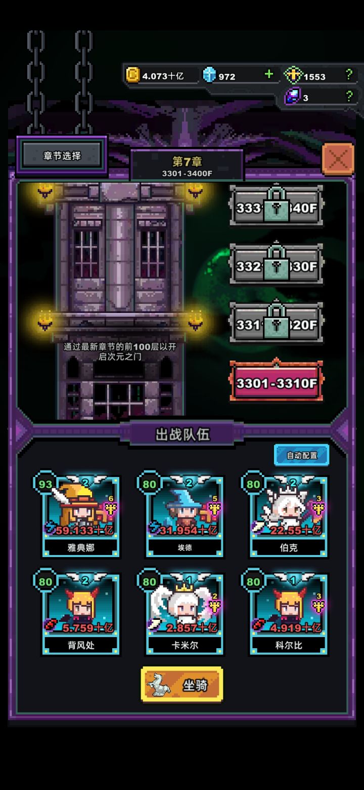 我现在刚肝完1000层,只有一个牧师,提供一个参考。大概在300之前,我使用了满编制三星英雄经行爬坑。(英雄推荐牧师,圣骑,吸血鬼,天使,法师,精灵)因为没有五星,有些职业少技能很鸡肋,因为前五百层我都是挂机过去的。191~400可以刷刷英雄升星的道具,或者钻石左侧特惠买,五星还是很有必要的。屏幕最左边有野外可以打打那个小屋子和石头,各位萌新注意了,商店包括制造药水都可以有永久提升英雄属性的