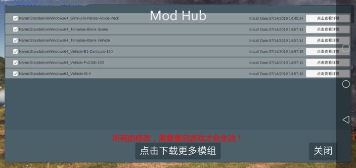 我已经按说明安装到指定文件夹了,但是游戏里的模组工坊也显示出来了,战车表列就是没有mod车