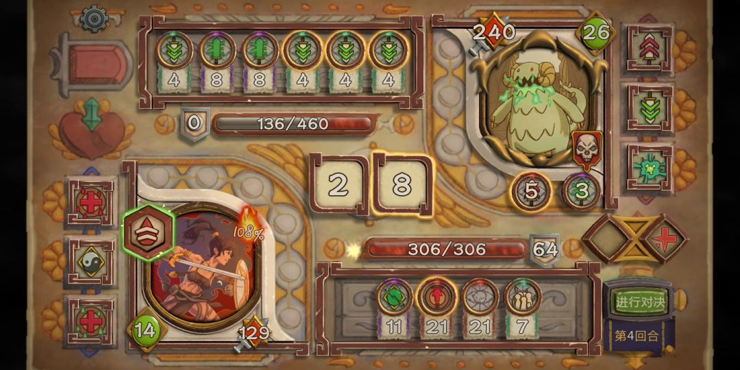 游戏难度还行,只要有个明确的思路,玩起来还挺舒服的。诅咒我全选的怪物强度+1,为了不那么麻烦,顺便体验一下难度。前期宝物、饰品上的选择上不能要求太高,以攻击力为主,祈愿以怒气>金币>攻击力>护甲>其他的顺序选,祈愿怒气在一到四层提升都很慢,价值稳定;金币同理;攻击力主要以装备和食物提升;护甲前期提升,是1-3,而后面的层数会提升到4-12甚至更高,因此护甲前期可以不做考虑,玩盾流的可以考虑多入