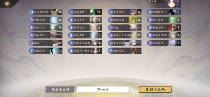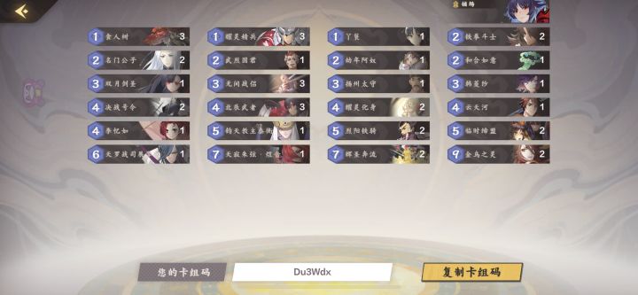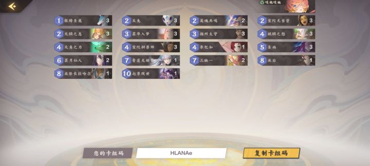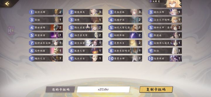 适合新人吧,造价算是比较低的了吧。三红三黄,小忆如送的,龙姬和七尊可以其他的顺替,基本灵儿妈和巫长很少打出来,只做后期补牌用,三缺一亲测人品好有奇效。问就是己方大木头龙姬对面小蘑菇😁