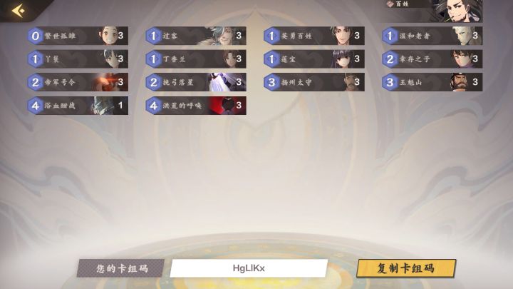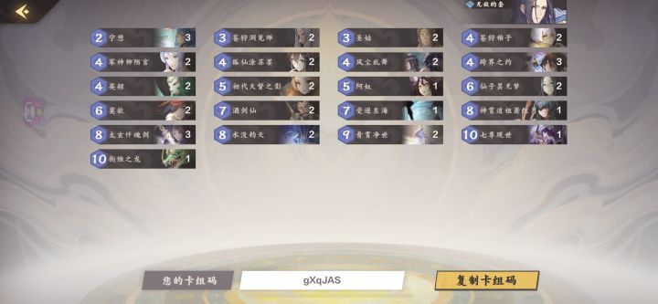 使用说明:起手找幸存之子和帝君号令,利用幸存之子和洪荒呼唤的高额成长击败对手。优点:卡组造价极其便宜。缺点:幸存之子容易在成长之前被解掉,被解场之后很难胜利。