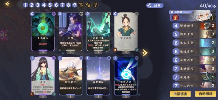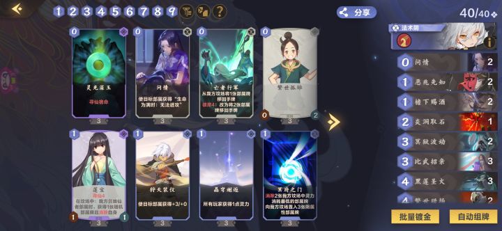 额外补充:炎洞取石可以指自己的恶兆先知;利用问情/比武招亲,可能可以让对手的六个格子占满部属,但每回合的伤害不高,此时可用同归于尽取胜;萧红月的效应能让对手的金乌之灵只有2/2;一号位比武招亲有可能召唤对手的夙瑶,阻止多重联袂触发。