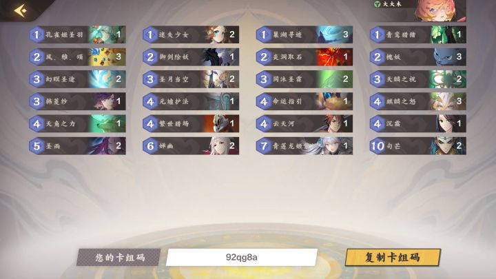 2021马上就要过去了,让我们一起辞旧迎新,迎接2022的来临🥳🥳🥳这是今年写的最后一篇攻略了,最近在研究圣俑咸鱼体系,玩得挺有意思的,我走的是偏快攻路线,这次给大家带来两套卡组,一套咸鱼阴,一套咸鱼木。下面我来分别讲解一下,首先来咸鱼木。先上卡组码:GUdHN5其实这一套不算是纯的咸鱼森罗木,应该说是森罗混合木吧,我在咸鱼体系的基础上,混合了木系低费的圣鹿,以及铁拳和公子,走的就是快攻铺场