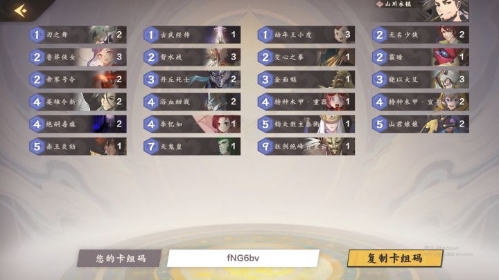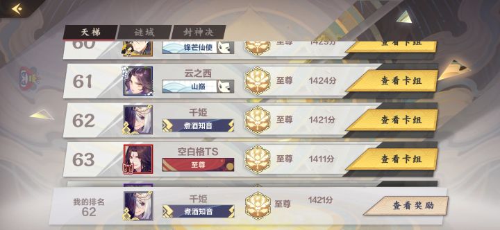 名片及卡组如上(圣雨满3)昨天下午17:40削弱神木之歌后组牌开打从圣位3一路连胜上至尊上尊之后输两盘控火,还有一盘印象不深了一路连胜到1k4分分段比较低,参考性不强(但是这胜率属实让我按耐不住发文的手www)怎么说呢,感觉小木甲中速化潜力很强,在削弱了神木的前期能力之后,我放弃了素弦和蝉锦,带满檀舞,既然横铺软了那咱就单养一个大的,养红白王,养紫渊(麒麟之怒yyds),尽量避免一