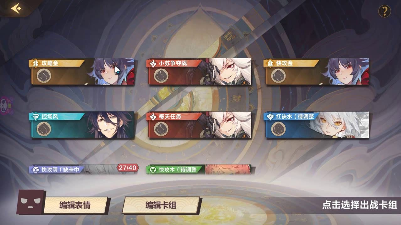 如履薄冰:本关为自带卡组关卡,双方所有部属灵力消耗-5,但是攻防会变成1/1,用快攻金快速铺场即可过关,本关要点是提高部属血量,起手建议刷耀灵精兵、无间战侣、烈阳铁骑以及各种buff等能加血量上限的卡