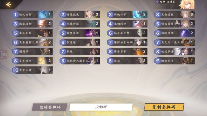 我本来带2张梦蛇的,因为女神经常杀火之灾,但是火之灾嗜血打脸伤害牌太香了,而且灵经常开大满格子,杀了火之灾或有奇效。另外,不建议一起带风之灾,两个魔族,死亡率太高,建议只带一个魔族。