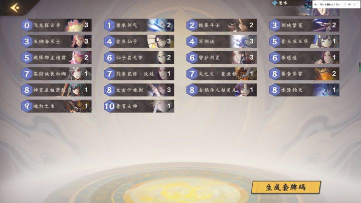 开局不要高费拿过牌,最好是丹青之灵/心机玲珑+宇外纶音+1费2费过牌卡。细节多玩多思考就知道了。