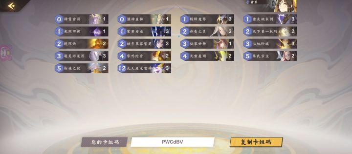 卡组码附在最后虽然每天低保养老玩家 但是还是配了套NTR风 想着抓只版本强势的妖神卡组 结果黄鹂没打着…… 到只剩十来张牌时双方都开始留卡了 可惜红烟露最后一张才来 不然也不会打的这么辛苦目前这套风打了不到十局全胜 但是没遇到木火黄鹂和打快攻的所以胜率不好说 理论上有14次Ntr的机会还有两张变脏比 应该是够恶心下版本BT了 8Z7lNf