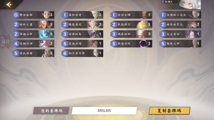 新卡包出了之后,我抽了三十抽,略微挑了几张卡微调了我的灵剑卡组,请各位大佬帮忙补充修改,如图所示:九天琼液,0费回3血,对魔族用还能打3,非常高性价比的联袂组件,这里带两张,可以保部属站场,关键时刻也可以续命。开启剑匣,1费灵剑的压缩包,这里放掉一张授剑带一张这个是为了获取主动位置的封印剑剑心通明,2费给在场神兵挂不屈,联袂所有部属不屈。预判aoe保场面的神卡,一张即可多了卡手。新李忆如,
