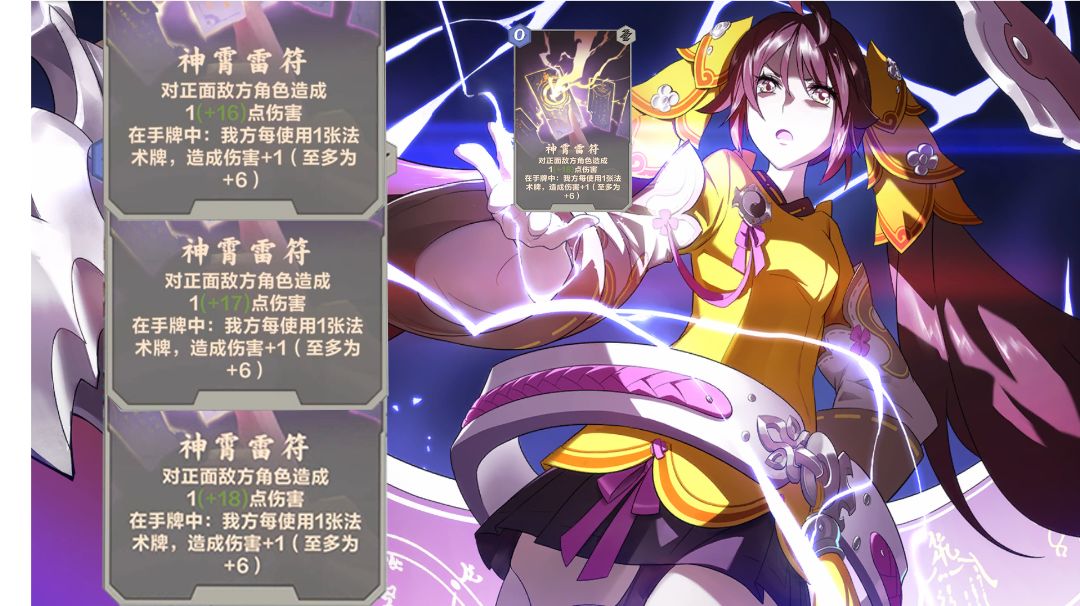 当神霄雷符和宇外纶音达到上限后,通过换进牌库再重新刷出的办法可以重置上限,只要不断换牌刷新上限,层数就可以一直叠加。