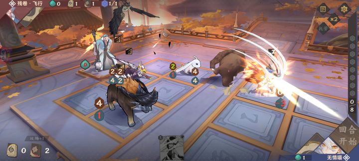 泪之余烬在对目标部署造成伤害的同时还会对双方主将都造成两点伤害。首先我们在甲位或乙位用泪之余烬将敌方乙位消灭,虽然此时我们只剩一血了,但是不要方,丁位的狗狗会帮我们回血(治愈系汪汪~),同时对敌方主将造成伤害,最后再用一个泪之余烬解决战斗。