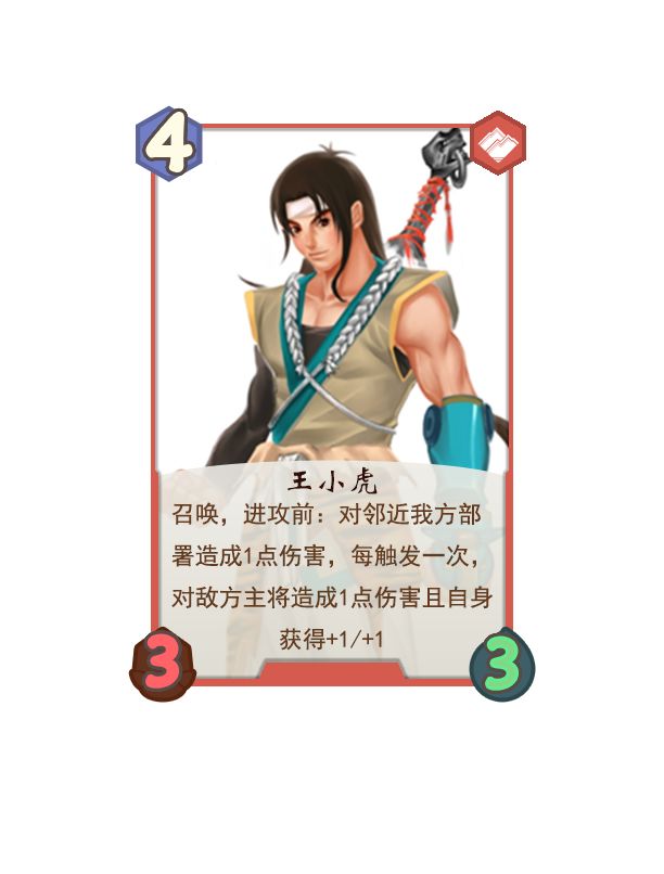 红卡-青年王小虎。虽然这个效果感觉有点反派,但也可以说是伙伴们把你们的力量借给我哈。构思由我提供,卡图的制作和效果改进由此位大佬完成,多谢大佬。@dota正面
