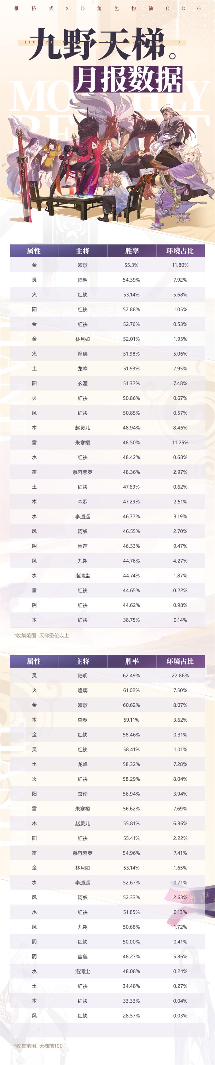 ₪小苏爆料₪九野各属性主将五月胜率数据曝光!最强者竟是陆明?