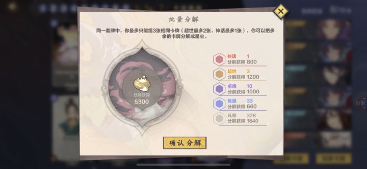 红卡和橙卡不想分,每次手动一张一张找来分解有点难受