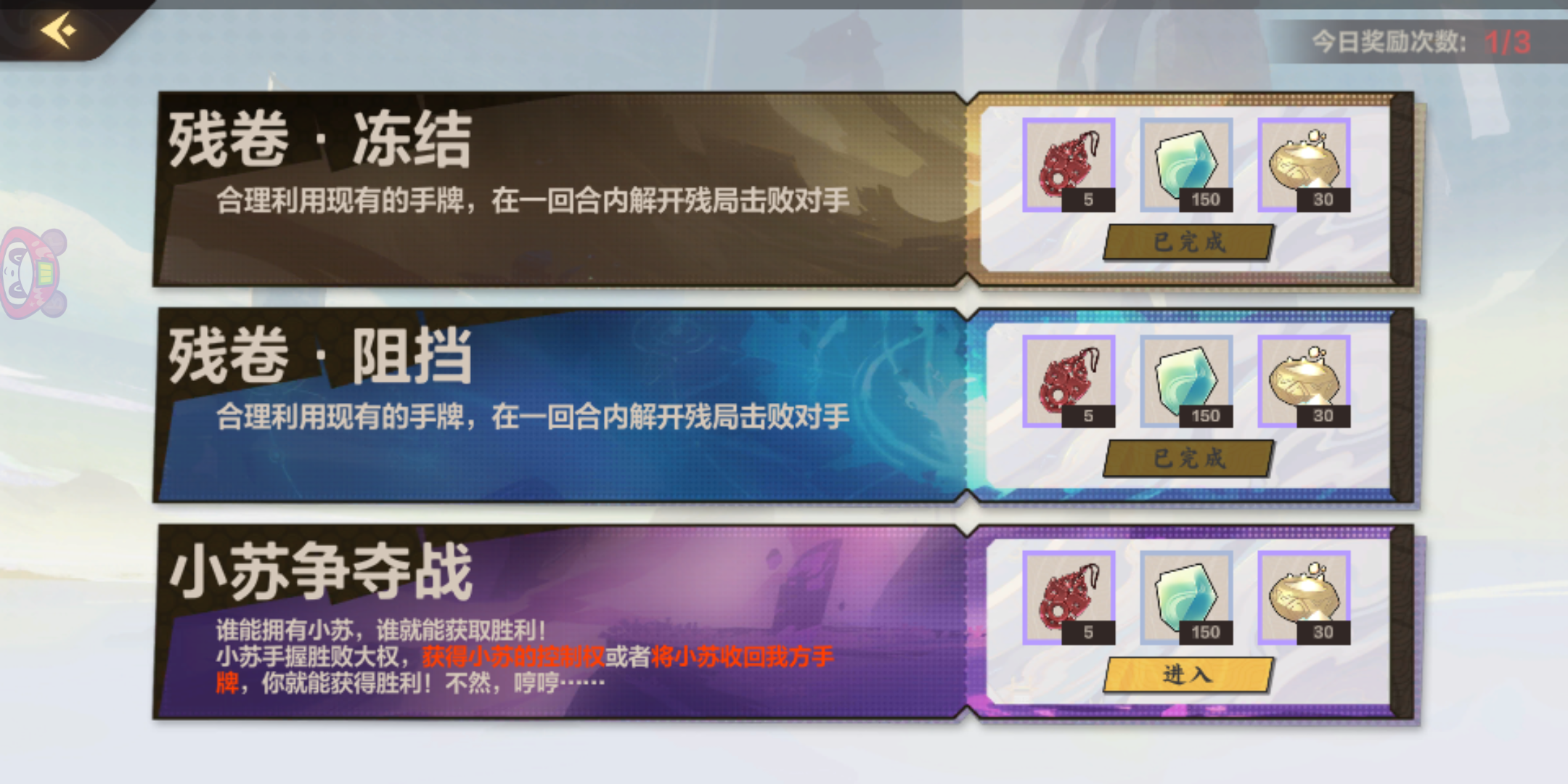 建议策划把诸如小苏争夺战放到可永久挑战的模块,不要用这种恶心人的阴间挑战来恶心每天上线只玩每日挑战的人,这样彼此大家都有游戏体验,喜欢动脑筋搞花里胡哨的人可自选模块去那边动脑筋,不想搞花里胡哨的玩家也不受影响,彼此快乐,彼此都好