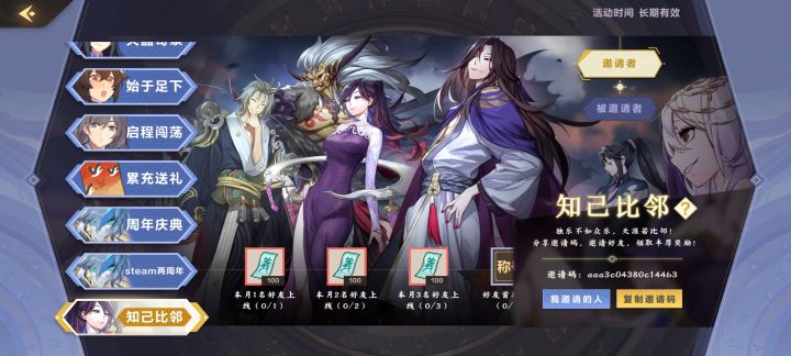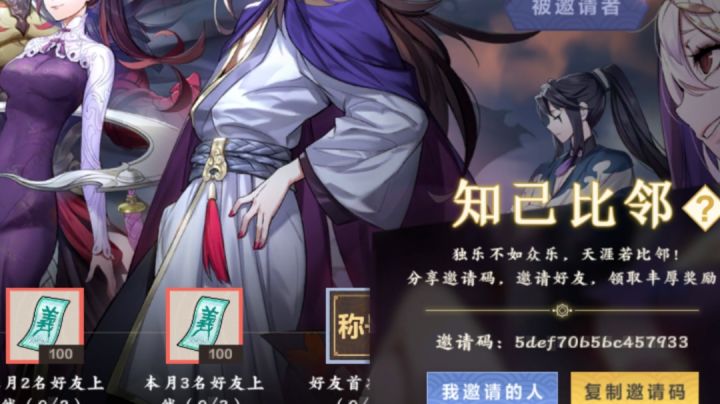 aaa3c04380c144b3新人来互填邀请码,知己比邻,8级后可以填, 填写邀请码后,几天内就可以根据等级提升可以领 取几十卡包+上万灵石,成功邀请到人填写邀请码也 可以获得大量奖励! 快来填写邀请码吧!