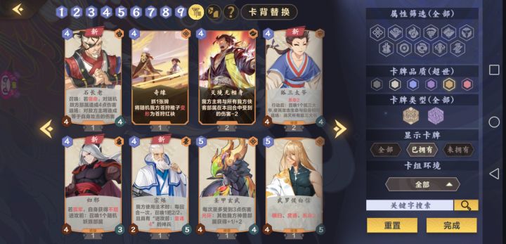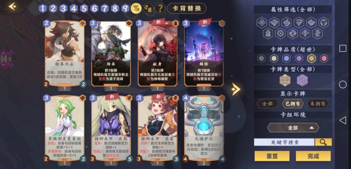 估计新人第一波得到的卡组就是定型的了作为启动卡组,然后配一个合适的主将,萌新求问右边下拉怎么看到自己的卡组有什么卡卡有什么用?只能下拉点不开。抽到的好卡自己有些组卡时看不到。还有第一个主将买不买?还是留着石头换其他东西