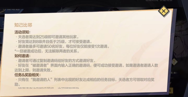 知己比邻活动新人只有25级以前才能参加拿卡包灵石奖励,萌新注意避坑,欢迎其他大佬评论区发邀请码~