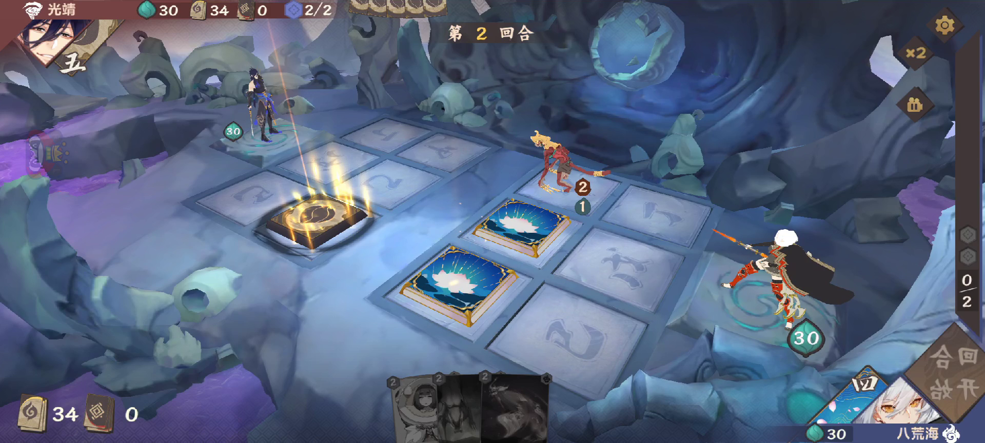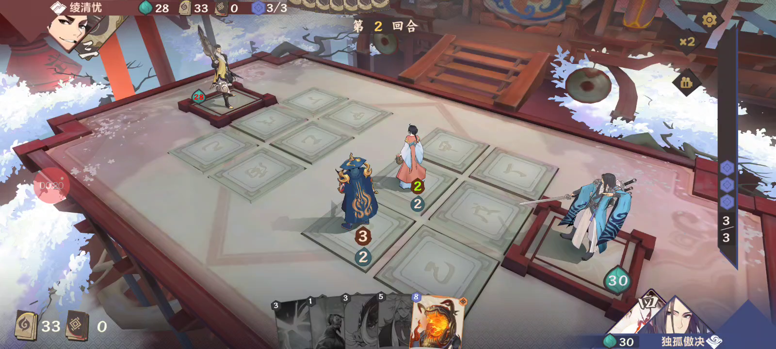 1费 虽然毒瘟很关键但是亏节奏还是得换,只留低费对面没先知拉黑衣就还好 2费 侠女这里直接甲位冲3血对面还是没动 3费 抽小虎,这里有考虑,一个是甲位小虎能防砍头,但是防不了打3法术,所以还是选择buff上在下小虎,果然是打3法术血赚,冲6血 4费 没办法只能交浴血酣战,对面砍头砍掉小虎,冲8血 5费 也只能下泰衡,这里往2号位移动,教主不被打1血,万一没挡就血赚,机关师加号召黎民,挡住了但是他buff也少一个,还行 6费 丹丘公子,对面下假卡黑衣 7费 不管了莽了魔免吹猪,但是刚好凝月,我人麻了,互相换血8费毒瘟(对阴神卡),双界之门机关师直接12血带走 总结:岚岚😋
