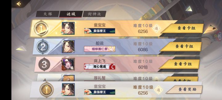 哈哈哈,报了前天晚上的一箭之仇🥳🥳两天时间也就抽空打一打,就打了一轮,总算最后boss给我来了个穷奇,不然5血成就又不好刷了😂