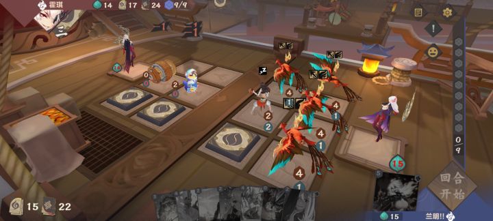 1费对面香菇,我没王小虎,哭了哭了2费甲位冲侠女白嫖,但是可能出-2-2伏兵就血亏,好险是424,一人掉3血3费下寻令客往后挤,躲了盖罗娇走脸5血,对面打我2血4费,甲位下王小虎防止李亿如,但是他直接回手了,啊这,然后晓以大义牛了个214,虽然不是盖罗娇牛到死了就血赚好吧,挡了5血还回了一血,然后寻令客走脸两血5费,5费回合两个怪很可能破敌之风,我们一号位打少年之谊,然后果然是破敌,亏两攻
