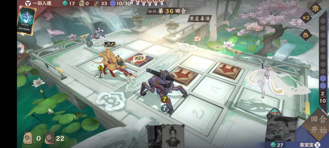 中期打到挑战6就没啥兴趣了 因为木前期每次战斗基本都是得把电脑手牌耗光才能赢 也想过换卡组 看了攻略都是推荐金 但是得重新学习 并且活动挑战是要通关7 想着咬咬牙打完7就溜了 然后在打7的时候发现了无部署类法器联动的快乐(若无部署手牌-1 2临灵1摸牌 对方部署-2攻1防等等)然后就开始了开局刷起始法器的玩法