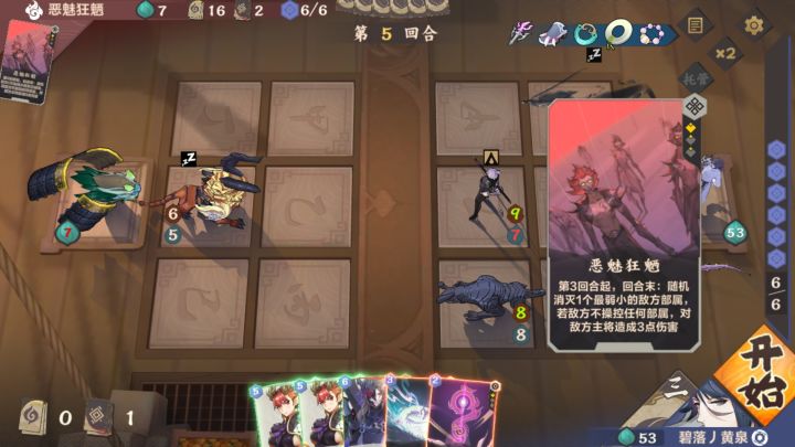 玩到现在还没搞明白。一场战斗遇到3种,不知道是不是bug??! 第9回合:魔焰噬心跟对面汲灵优先级?看动画是2点伤害先打上的,但是对面回了12血,我并没召唤。难道消灭优先级>直伤?但是有过这种情况:对面主将残血,我1号位情伤,对面1号位汲灵,是我的直伤先打死主将直接获胜的,而不是对面先消灭再回血。 汲灵这张牌设定就够恶心了,12血比木都能回还能配合各种退场效果。 第10回合:对面5/6号位连着2张砍头,第二个砍头为啥会砍自己6攻的仙子???场上可是站了两张22的砍头的。 第14回合:对面砍头我白衣,白衣只触发一次效果,不应该2张部署退场吗?(ps,砍头能砍巨型就太恶心了,这个消灭不讲道理) 这把前期比较顺,后面留手的牌注定穆然心不可能回手了😂差点还把自己烧死。