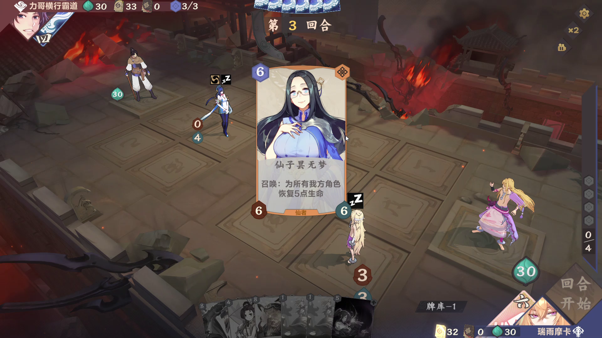话说一直摸不到穆然心,检索一次墓地也是慈炎舞,但说回来不是慈炎舞补牌+回血,可能对面霸王百里云那波就没了。