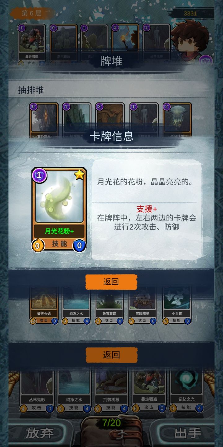 秘宝:“战士庇护”,开局必备,让你前三层体验极佳,后三层也起作用。之后是加能量的:课外读物、和荧光石,或者用牌效果叠,如零费丢卡加能的“洞穴蜡烛”。自律手环限制出卡数,不推荐。鲁莽印记污染卡组不推荐。能量4-5点其实就够用了。至于其他的秘宝,看个人喜好吧,不影响通关了。卡牌:“净化泉水”,必备神卡,1费强行将怪攻变成1,对毒和真伤自爆无效。后期卡组精简后直接无敌。(卡牌越精简越牛,