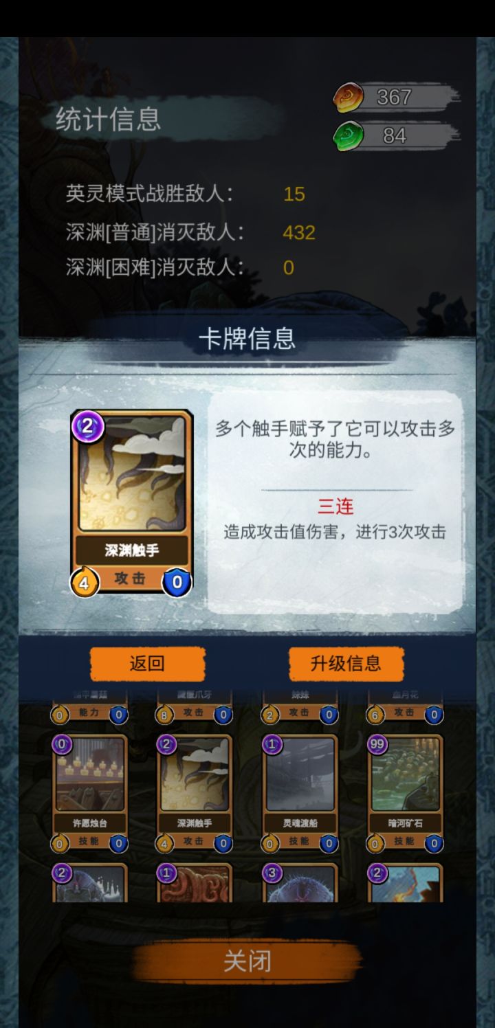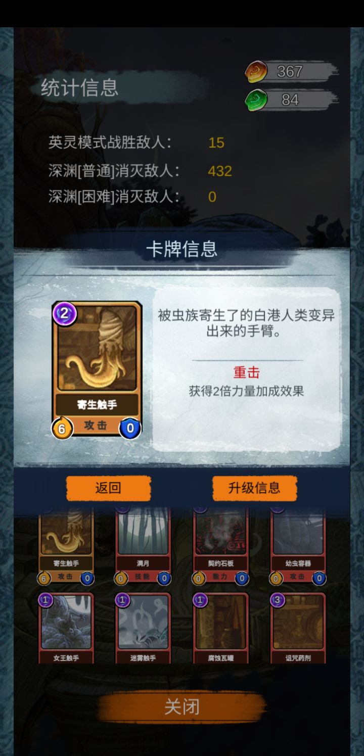 打了那么久我才通关普通难度的深渊,那个给人牌库里塞伤心牌的女人未免也太恶心了,真到了boss还没什么,我是真的感觉设计师是不玩这个游戏的。 至于怎么通关,目前我觉得只能用力量流硬拼,因为别的套路太慢,有些怪又越拖力量越强,有些怪免疫异常状态,只能在小兵和精英没用出高伤害之前干掉他们,这两个触手都适合力量流,在叠出高力量又翻倍的情况下可以打出巨额伤害。 不过防御牌也要有,不然容易死。