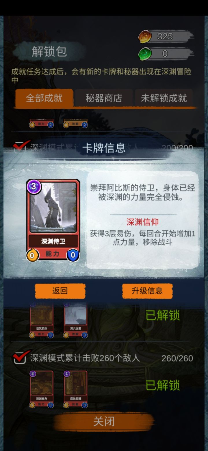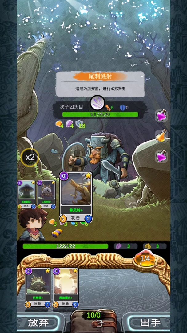 刚玩这个游戏几天,突然就开始迷上这款游戏!因为刚玩天赋秘器神的都木有!看攻略大神们都是暴力流!自己试了试打了几天的任务,解锁了一些卡牌!但是没有通关无奈!还有看到论坛的700血BOSS!哼哼怎么玩!难道除了暴力流就没有更快乐的玩法了吗!NO!就在今天凌晨我竟然通关了!700血BOSS简简单单!开始正题!先看下我的秘器跟卡牌!还有天赋!怎么样,普通吗?完全常用秘器!至于卡牌里面的勇往直前