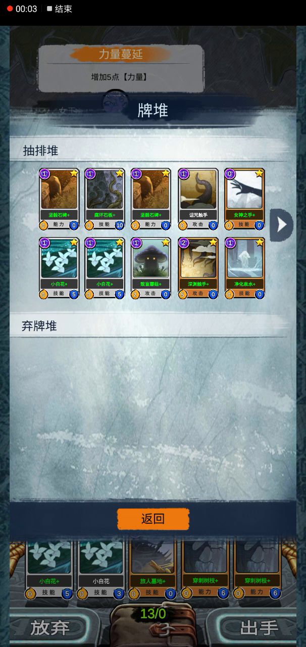 诅咒触手其实是小白花在第六关变换的,我不想要但是没办法删除了。能量书是开局找老人用20点生命上限换的。