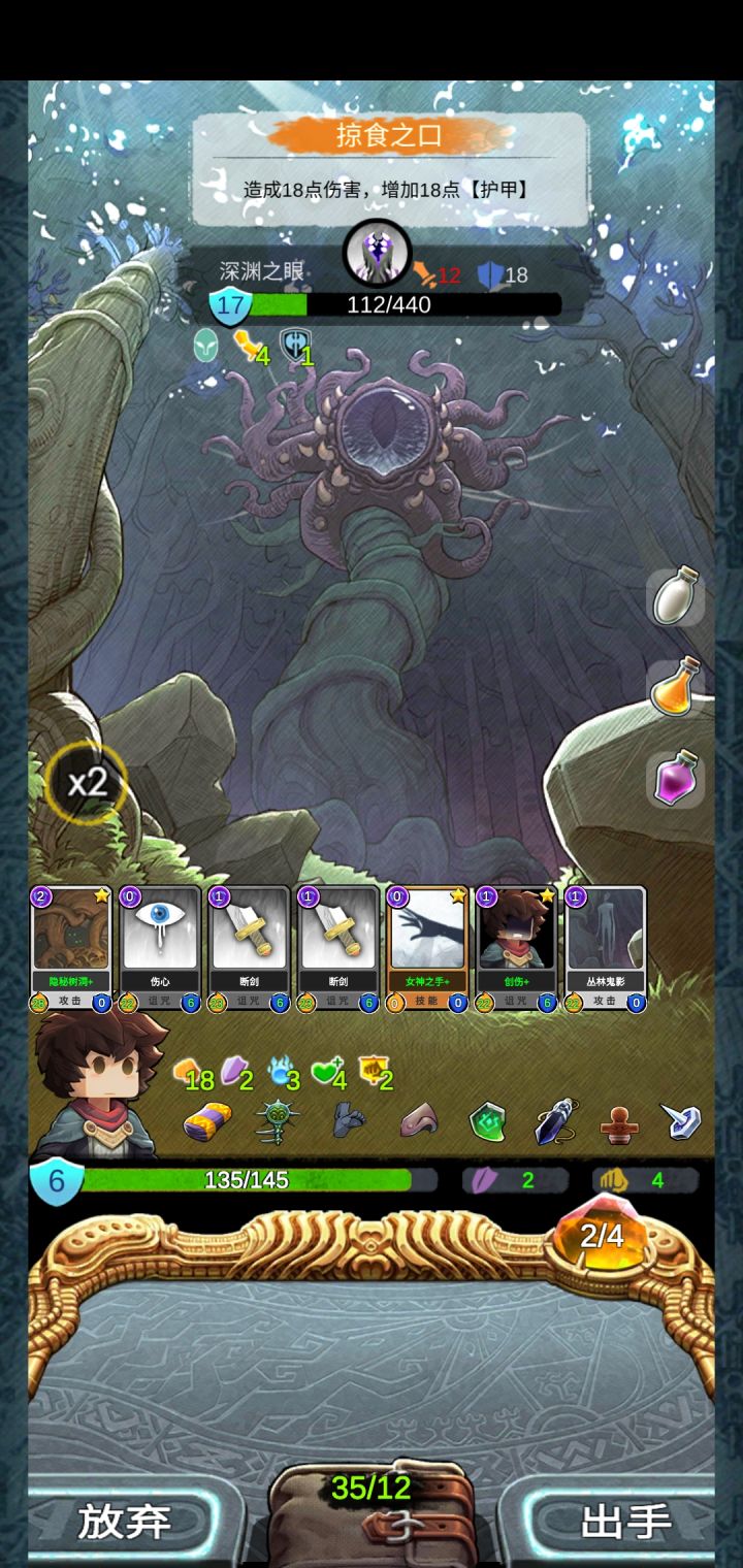开局一个诅咒钥匙,过程中能拿的诅咒牌都拿,能换的秘宝都换,枷锁,血咒,割伤都留着,目前刚打完5关,黑石护符是第四关拿到的,巫毒娃娃5关刚拿到。过程中也是删除基础牌,但是可以买扭动躯体,这样后面有了女巫鼻子也不怕打出创伤。主要就靠高力量秒怪,要是搭配海怪巨口,神秘纹路,隐秘树洞就更爽了。这个最后肯定没有深渊守卫那个每回合+2力量加的多,但是开局+20力量也挺爽的,诅咒牌也能打输出。至于双目花,从打