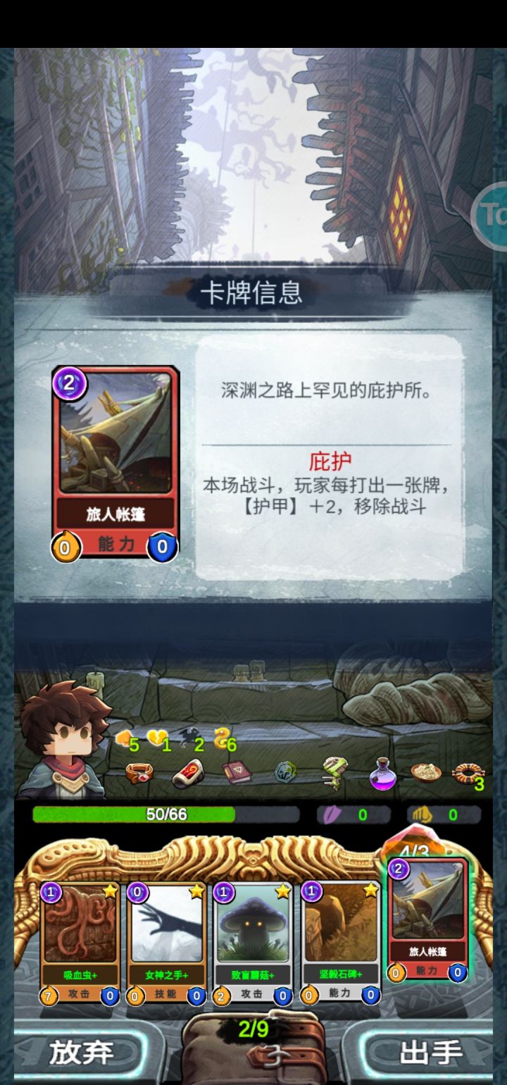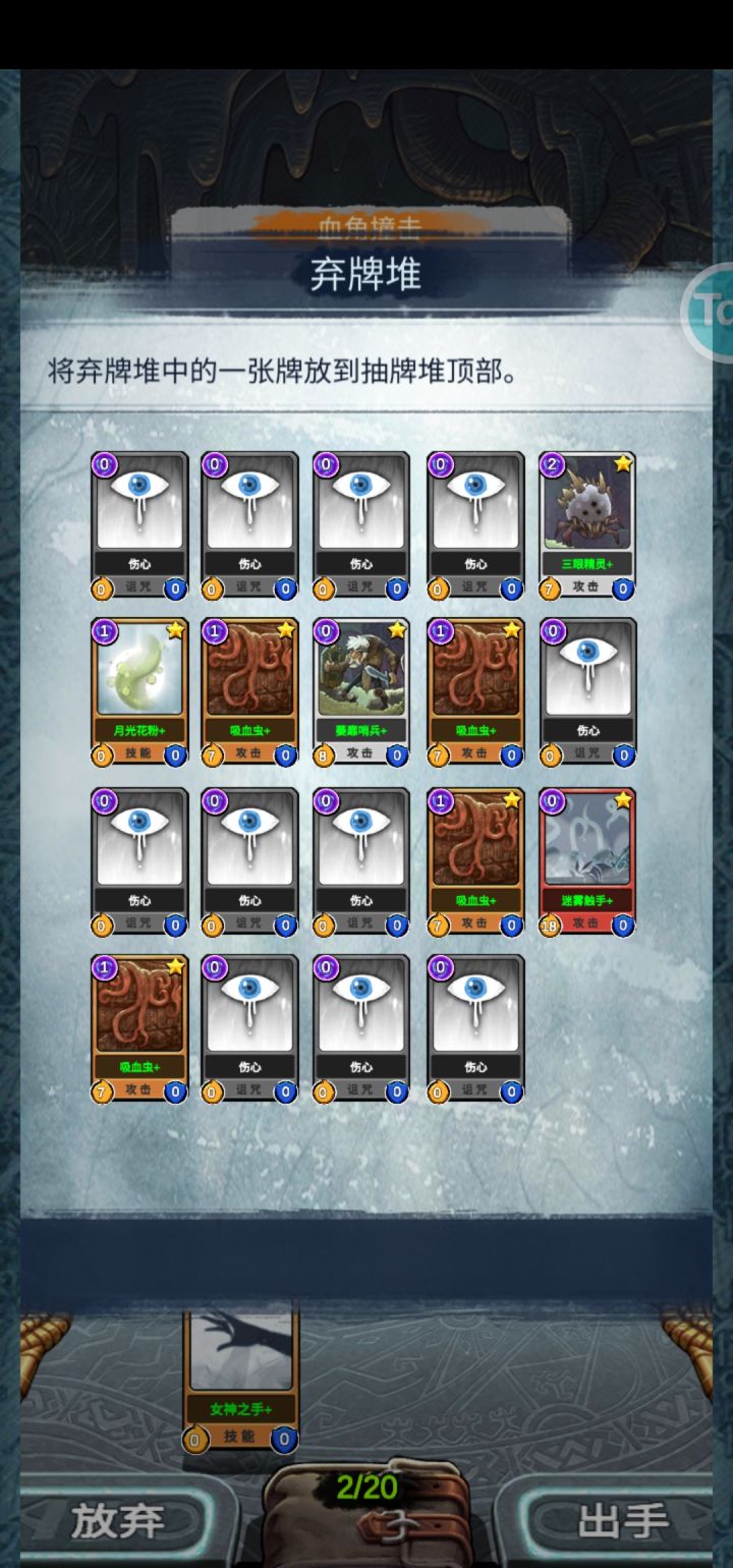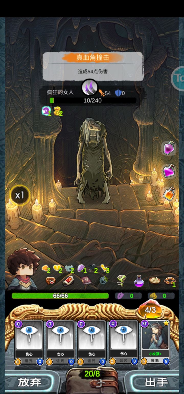 1.欲望手套显示所有的诅咒牌均可打出,但手牌有枷锁并且已经打出两张牌后,就被枷锁限制无法出牌。2.女巫鼻子,上阵诅咒牌+4攻+4防,但诅咒牌伤心(0费0功0防的无用之牌)只能享受+4防的效果。注:持续更新,如果有人发现新bug也可在此贴下评论,希望官方程序员不会头秃,少女祈祷中.jpg