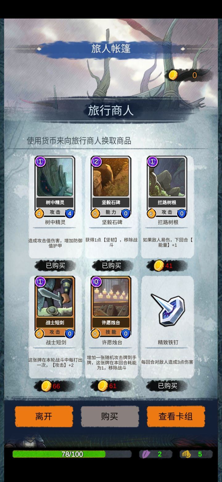 如题,第二章商店,只能移除一次卡牌,买不了任何东西……