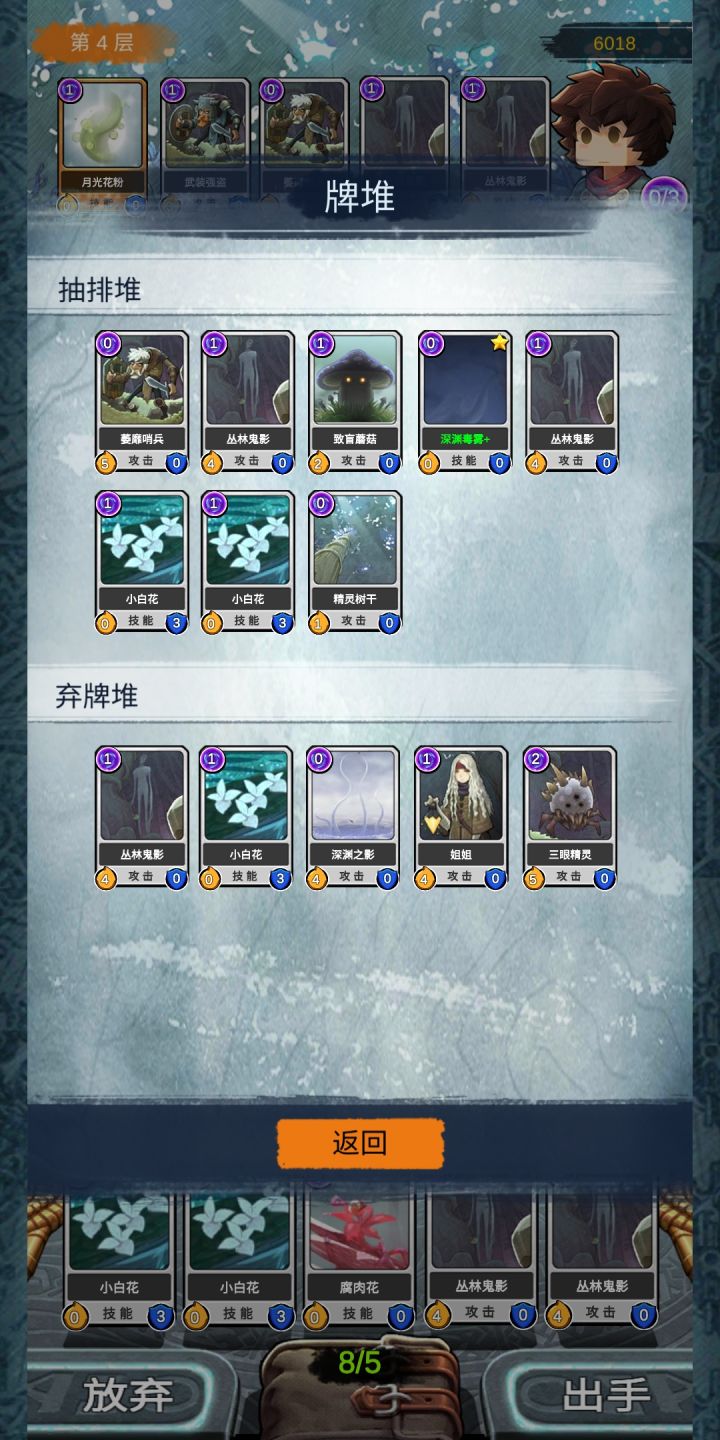 本来20张牌,重开变18张,少哪两张不知道,反正我没有带移出战斗的牌,唯一的一张深渊毒雾也升级了。