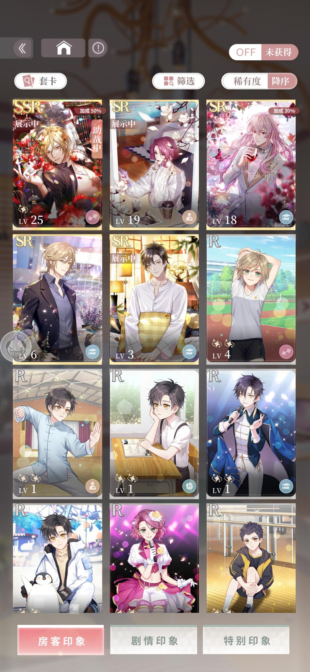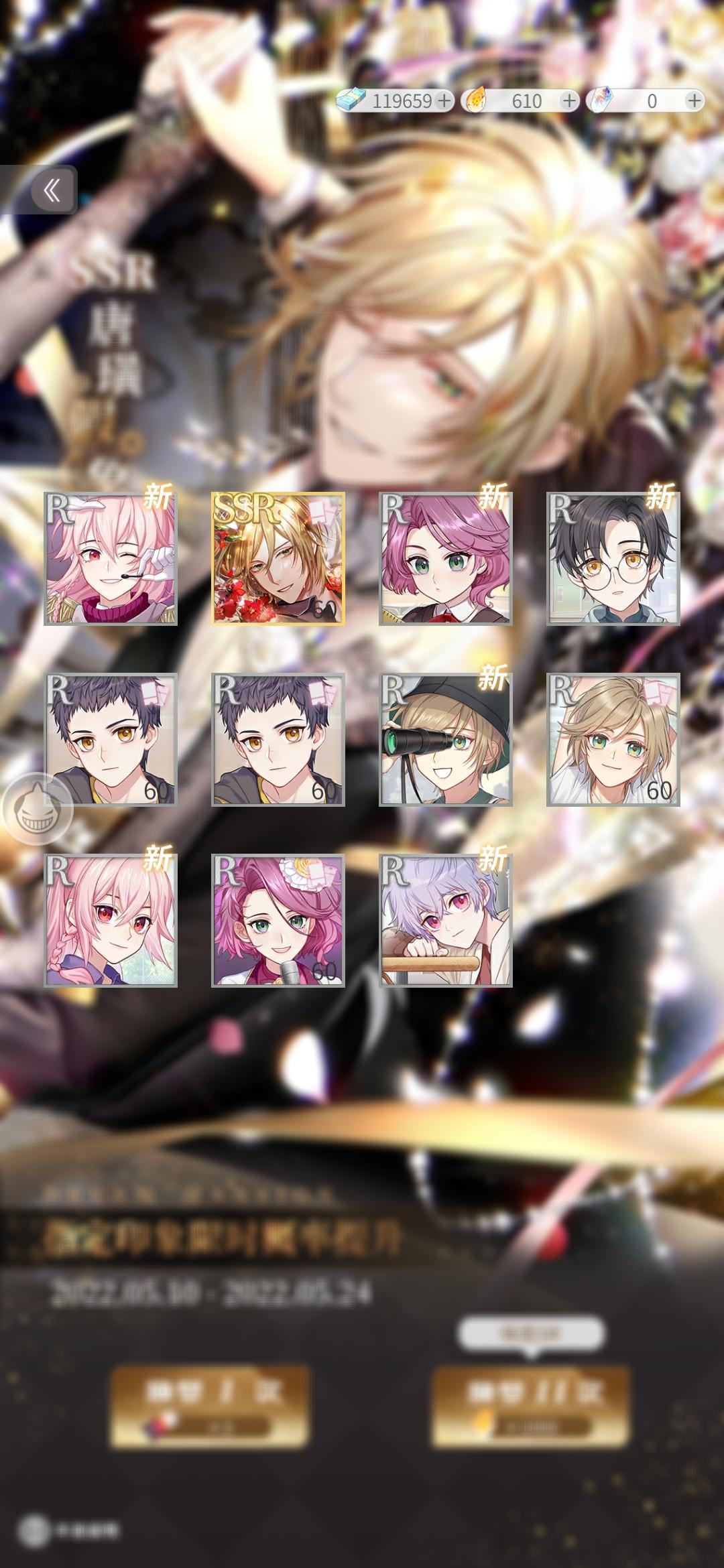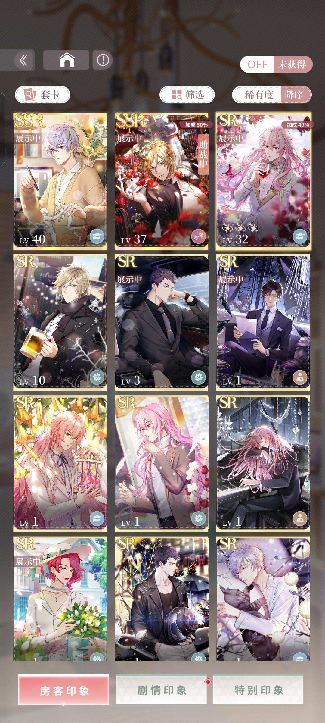 emmm就证明一下确实是有SSR的,不知道是不是赠送的所以爆率很高,第三次自费11连反而只有SR了……就氪了30r,一般这个类型的游戏我氪很少,不过剧情都过得去,0-5-1也没被卡住,有些多项选择确实是考验排列组合。也不是很欧,就几张SR……