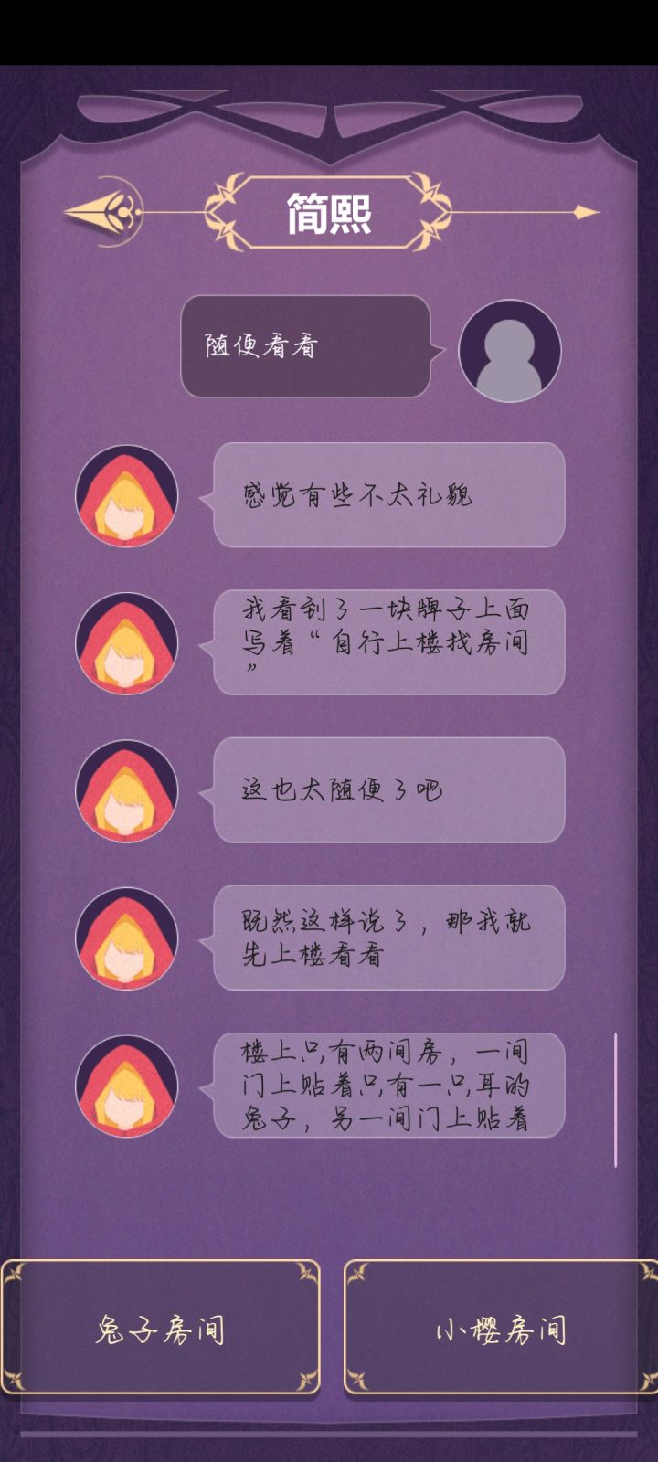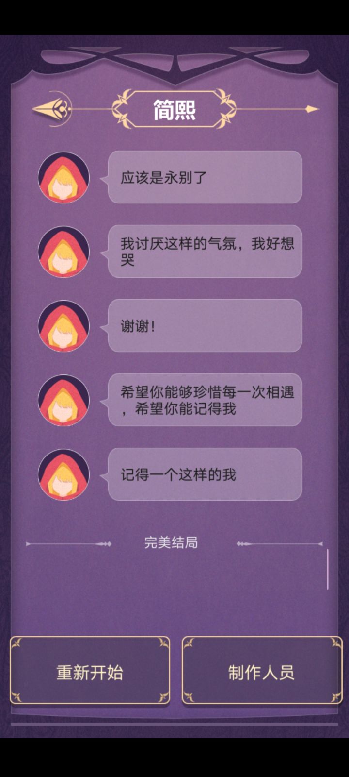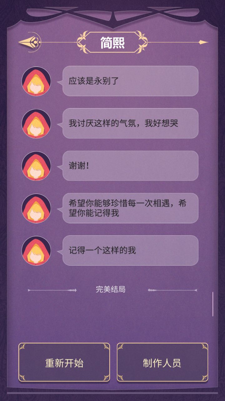 多玩了几遍,尽量打出了几个不同的结局,包括两个不完美,一个完美,一次直接死亡。我也逐渐了解到了更完整的故事。【以下内容涉嫌剧透,还未通关的小伙伴不建议阅读。】除了需要玩家去选择的小熊和兔子以外,似乎其他角色都非常的信任“我”,也就是玩家所扮演的这个角色。一开始简熙就选择了对“我”无条件的信任,在遇到任何选择的问题时都会直接让“我”来做决定。而且不仅仅是简熙,大叔还有女皇也是这样,似乎他们都相