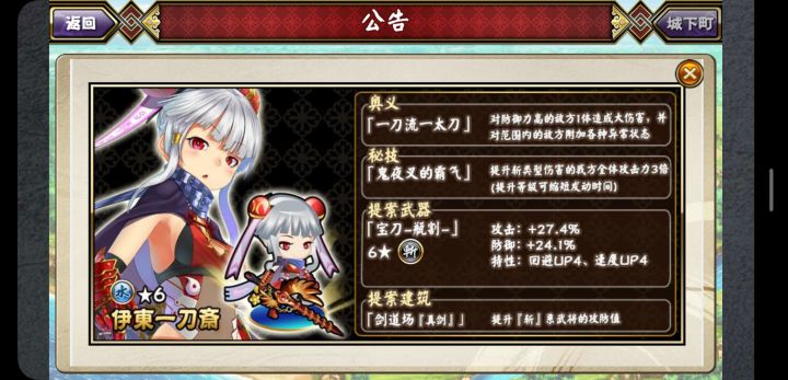 大家好,又见面啦,本周是一月一次的武神祭,卡池以新6带2张老6的模式推出。新卡的强度较低,但俩副产物很不错。考虑到额外的概率加成,如果缺复活将和暴力投的话,抽上几发并无不可。幼龙梵天丸推荐度3星奥义:对高攻击1体造成伤害,附加范围诅咒&自身高昂秘技:对高防御1-2体附加诅咒状态幼形态的伊达宗政,放弃开盾走上了输出路线(阳斩盛产输出?)开大时3条邪龙唰唰唰闪过屏幕,特效那叫一个炫酷,再一看