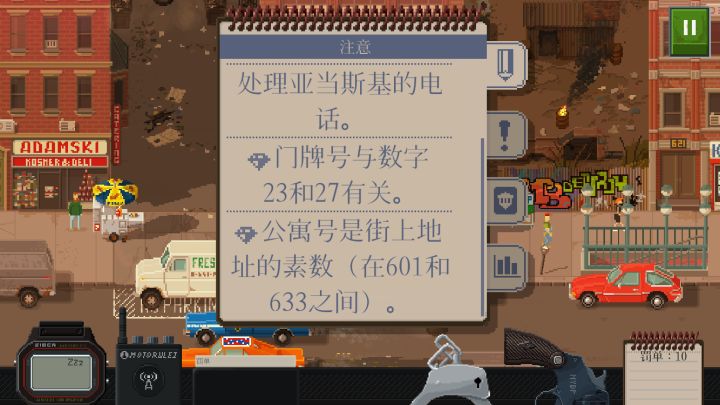 1.迈胖子死之后,第二天第三天警局会摆设花圈祭奠2.有一个每天都会出现的妓女彩蛋,浪费体力还浪费钱,体验一次就够了3.某一天,饭店突然关门,原来是蟑螂塞满了店,可爱的拟人蟑螂会在玩家要喷药的时候出现,选择喷或不喷会解锁不同的两个成就。4.游戏中,干洗店的老板等是无照偷渡中国人,还是制毒的,还有一个帮忙拆炸弹的黑人,他的名字叫马龙。5.最后一个我记得起来的就是第21天拆炸弹的时候,会选择一些