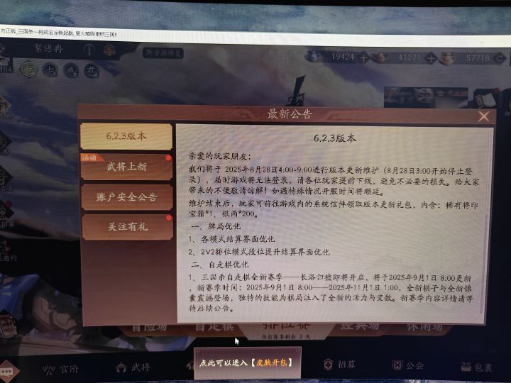 之前一直用手机玩,登入电脑客户端和浏览器都是这样,登入进去就卡在皮肤开包这里,点什么都没反应。