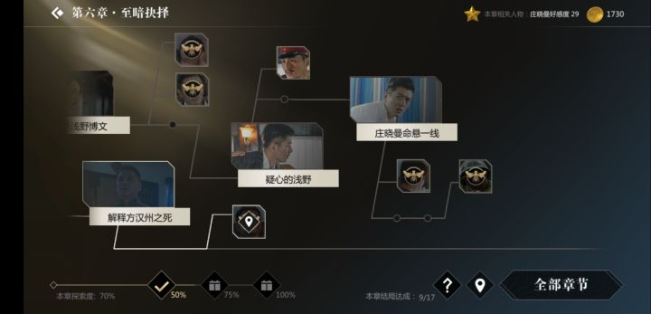 全结局都解锁了,“美丽世界”却还卡在95%探索度,而且也没有任何锁定提示。不少收集控玩家都遇到过吧……后来看了贴吧攻略帖,原来“方敏的眼神”剧情就是丧钟结局和美丽结局的分支了,而且在那里选择“放任方敏”后,还要继续选择嫁祸方敏的方式,并看完剧情,才能把各个节点连接起来,达成100%。看来大家都一样,刚开始舍不得方敏,想先劝说她,然后再回来点击另一个选项来刷探索度,谁知这里是要完