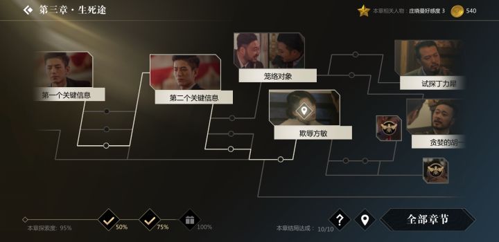 为了救庄晓曼,我熬到了快两点。前面基本只要剧情能继续就没有探索其他剧情走向,结果我却丢下庄晓曼苟且偷生,晓曼被砍了头。。。我不能接受,于是去前面挨一个探索没有走的剧情改变走向,害,由于有些剧情必须在前面多个选择同时满足的情况下才会触发,所以最终还是看了攻略,在第六章解锁了大风起兮。我必须活着,但是不能让庄晓曼死掉!