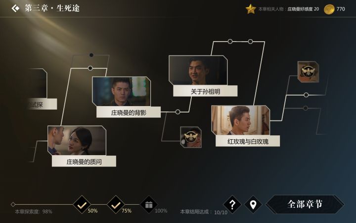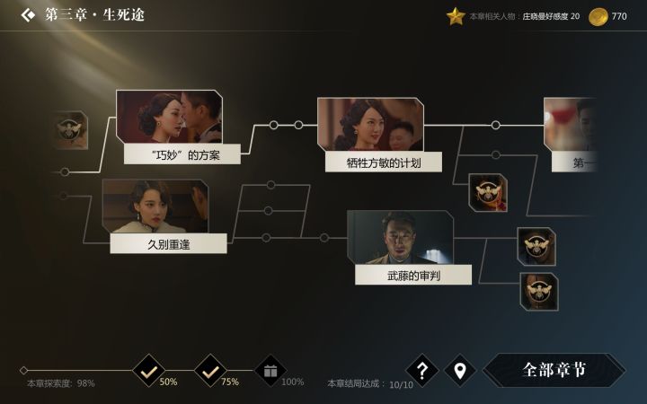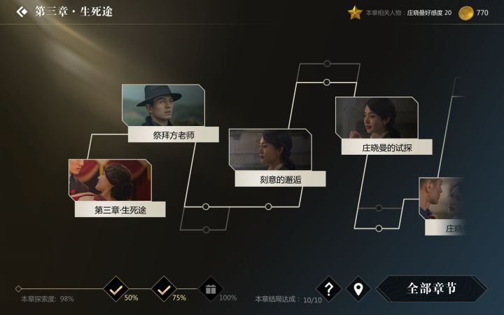 如题 所有结局都打出来了 所有选项也都选了 但探索度只有98% 和庄晓曼的好感度是20 目前选的路线都是跟着红色芳华结局走的 问问是哪里出问题了吗
