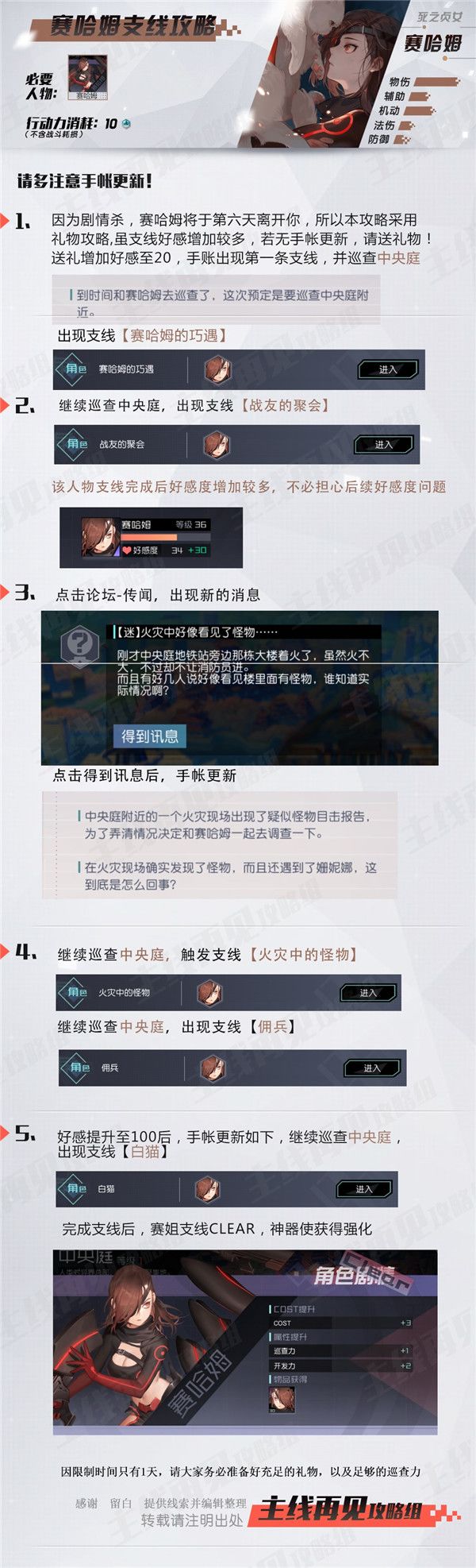 楼主跑路啦!看到这个帖子的玩家请注意时间,这是19年7月的过期攻略了。游戏已经大后期,暴击装备基本淘汰,请直接做穿透装!穿透装!穿透装!-----每一天都有无数个相似的帖问世:1.我这些神器使培养哪个好?2.我该走什么剧情?3.我该怎么搭配影装?4.我怎么攻略xx神器使?5.xx剧情线怎么走?先4.,除了以下难度较高的,其他刷好感度看手帐,有手就能攻略。不安心就百度一下找攻略,保姆