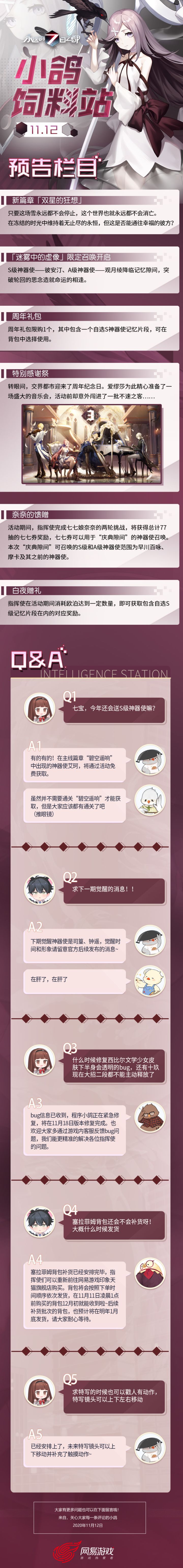 小鸽饲料站 | 周年庆最新情报公开,「奈奈的馈赠」送77抽!